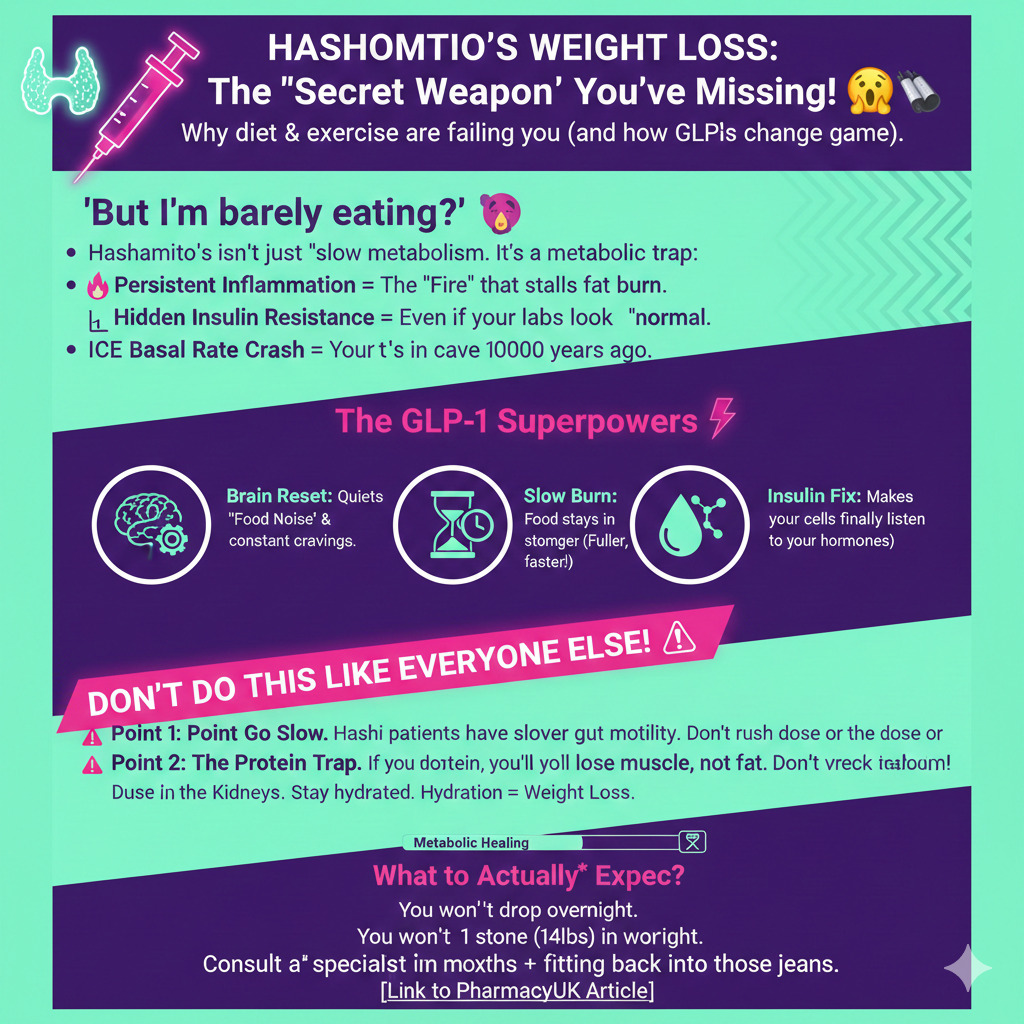 What makes this particularly significant is that these results occur without extreme calorie restriction or excessive exercise regimes. The medication appears to address the underlying metabolic dysfunction, particularly insulin resistance and disrupted satiety signalling, that makes conventional weight-loss approaches so ineffective for women with autoimmune thyroid disease.